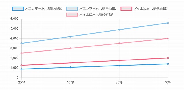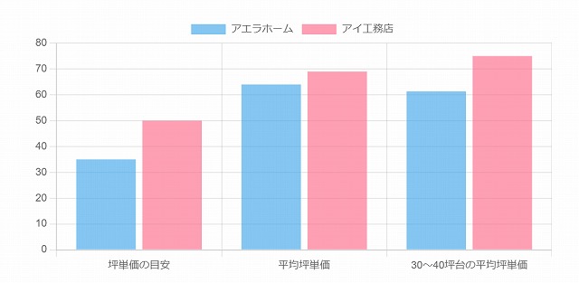 価格・坪単価 アエラホーム より安価な選択肢を提供(平均坪単価:アエラホーム約64万円 vs アイ工務店約69万円)