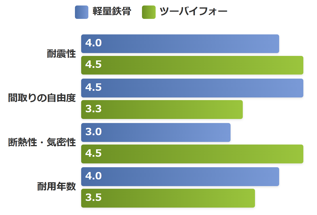 | 新築時の耐震性 | 高い | 非常に高い | ツーバイフォー |